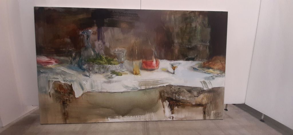 У картин небольшого формата публика ходит кругами, рассматривая детали, иногда встаёт на корточки, чтоб разглядеть нижний ряд.
