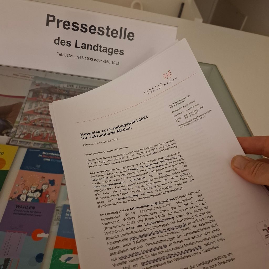 За ним наблюдают сегодня разные медиа, прямо отсюда, из ландтага земельного парламента в Потсдаме. Нынешние выборы предполагают столкновение очевидного и невероятного в разных партийных программах и прогнозах голосования.